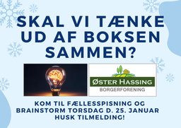 Vær med når vi tænder juletræet søndag den 30. november kl. 16.00 - Vi ved godt, at det hverken er Nytorv eller Rådhuspladsen - men vi vil gøre alt for alt for julestemningen i Øster Hassing. Derfor har vi sørget for Gløgg til de voksne og varm chokolade til børnene. Kom forbi og få en snak med dine naboer.